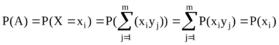 Двумерной случайной величиной называется система из двух одномерных случайных величин X, Y, где как X, так и Y являются дискретными случайными величинами. В пространстве элементарных событий дискретной случайной величены XY определим сложное событие A: В результате испытания над двумерной случайной величиной XY, случайная величина X приняла значение xi, случайная величина Y - любое значение.