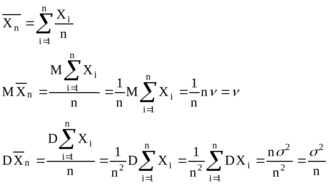 Рассмотрим независимые: одинаково распределенные случайные величины X1, X2, ..., Xn с конечным мат. ожиданием и дисперсией.