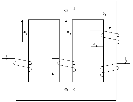 Рассчитать магнитную цепь методом двух узлов и определить величины I2, Ф1.