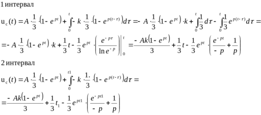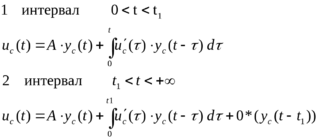 Задачу требуется решить с помощью интеграла Дюамеля. Искомую величину следует определить (записать её аналитическое выражение) для всех интервалов времени.