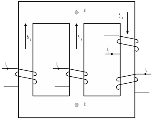 Рассчитать магнитную цепь методом двух узлов и определить величины I2, Ф1.
