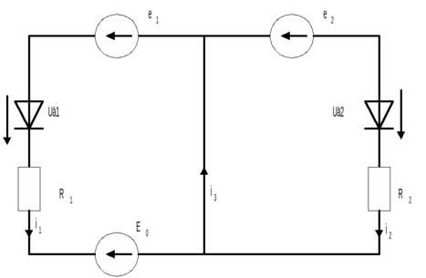Исходя из утверждения что если к диоду приложено обратное напряжение, то тока в цепи нет , и применив метод наложения получим: