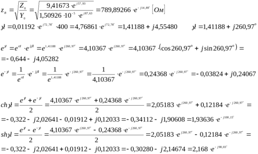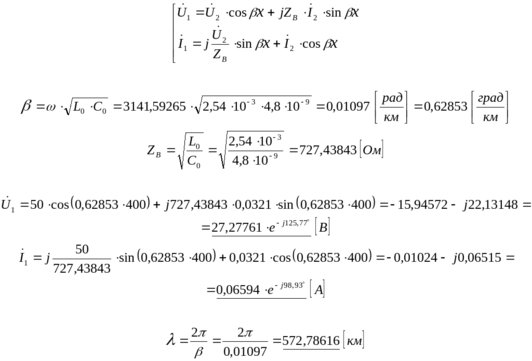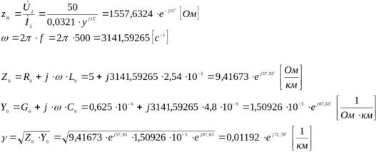 По данным в таблице 3.5 параметрам линии , частоте , длине линии , комплексным значениям напряжения и тока в конце линии, сопротивлению нагрузки требуется: