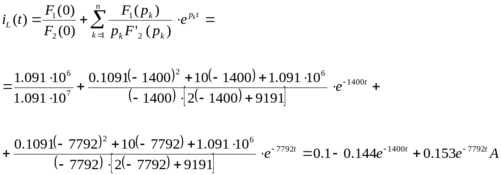 Оригинал тока iL(t) найдём с помощью формулы разложения: