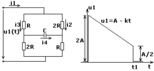 | t=0- iL(0-) = iL(0+) = iL(0) = i1(0) = E / (R1 + R3 + R4) = 252/151 = 1,67A uc(0-) = uc(0+) = Uc(0) = i1(0)R1 = 50,1В t=0+ i2(0) = i3(0) – i1(0) i3(0) = [E – uc(0) – R2i2(0)]/R3 i2(0) – (R2i2(0) / R3) = (E – uc(0) – i1R3)/R3 i2(0)(R2 + R3) = E – uc(0) – i1R3 i2(0) = [E – uc(0) – i1R3] / (R2 + R3) = 58,28 / 137 = 0,43A При t=0: di1/dt = [i2R2 – i1R1 + uc]/L = 21,93/0,097 = 226,08 i1(0) = A1 + A2 = 1,67A di1/dt = p1A1 + p2A2 = 226,08 - 43312,24 A1 - 87255,96 A2 = 0 A1 = 1,67 – A2 - 72331,44 = 43943,72 A2 A2 = - 0,6 A1 = 1,07 i1св = 1,07e – 87255,96* t - 0,6e – 43312,24* t A i1(t) = 2,17 + 1,07e – 87255,96* t - 0,6e – 43312,24* t A 2) Определить ток операторным методом (задача 1): Составим схему замещения для послекоммутационной цепи: E(p) .=` E/p J1(p) = J3(p) - J2(p) Li1(0) + uc(0)/p= J1(p)(R1 + pL) - J2(p)(R2 + 1/cp) E/p - uc(0)/p = J3(p)R3 + J2(R2 + 1/cp) Решая систему уравнений, получим: J3(p) = [E/p – uc(0)/p – J2(R2 + 1/cp)] / R3 J2(p) = [J1(R1 + pL) – Li1(0) – uc(0)/p] / (R2 + 1/cp) uc(0) = 50,1В i1(0) = 1,67A Решая систему уравнений, получаем J1(p) = 1,07/(p + 87255,96) - 0,6/(p+43312,24 ) + 2,17/p 1/(p + α) = e-αt => i1(t) = (2,17 + 1,07e – 87255,96* t - 0,6e – 43312,24* t)A 4) Рассчитать ток i4 с помощью интеграла Дюамеля (задача 2): Разность потенциалов u1 между зажимами заменяем веткой с противоположно-направленной ЭДС. i4уст = 0, т.к. конденсатор не пропускает постоянный ток i4(t) = Aept Комплексное сопротивление цепи Z(p) = 1/cp + 2*[R*2R/(R + 2R)] = 1/cp + 4R/3 = 0 p = - 3/4RC Через ветку с конденсатором проложена разность потенциалов: uc = E[R/(R+2R) - 2R/(2R+R)] = - E/3 По закону коммутации uc скачком не меняется: uc(0-) = uc(0+) = uc = - E/3 i4(0) = - uc(0)/(R + 2R) = E/4R = Ae0 = A При E=1, i4(t) = g4(t) = (e(-3/4RC)*t)/4R g4(t - τ) = (e(-3/4RC)*(t - τ))/4R Рассмотрим момент времени 0 ≤ t ≤ t1 u1 = A – kt u1' = - k i4(t) = u1(0) g4(t) + ∫u1'(τ) g(t – τ)dτ = [2A(e(-3/4RC)*t )/4R] + ∫-k*(e(-3/4RC)*(t - τ))/4Rdτ = = [A(e(-3/4RC)* t )/2R] – (ke-3t/4RC/4R)*∫e3τ/4RCdτ = = [A(e(-3/4RC)* t )/2R] – (ke-3t/4RC/4R)*[4RCe3t/4RC/3 – 4RC/3] = = [A(e(-3/4RC)* t )/2R] – [kC + ke-3t/4RCC]/3 Рассмотрим момент времени t ≥ t1 u2 = 0; u2' = 0 i4(t) = u1(0) g4(t) + ∫u1'(τ) g(t – τ)dτ + (u(t1) - 0) g4(t – t1) + ∫u2'(τ) g4(t – τ)dτ = = [A(e(-3/4RC)* t )/2R] – [Cke-3t/4RC(e3 t1/4RC – 1)/3] + (A/2)*(e(-3/4RC)*(t – t1))/4R + 0 = = [A(e(-3/4RC)* t )/2R] – [Cke-3t/4RC(e3 t1/4RC – 1)/3] + A e(-3/4RC)*(t – t1) / 8R |