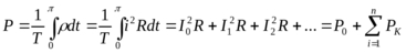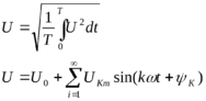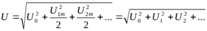 Действительное значение несинусоидального напряжения и тока равно корню квадратному из суммы квадратов отдельных гармоник.