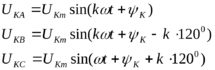 Рассмотрим токи и напряжения трехфазной цепи при несинусоидальных входных напряжениях, но при симметричной нагрузке. В трехфазных электрических цепях имеет место кососимметричная симметрия, и поэтому при разложении напряжения в ряд Фурье будут отсутствовать постоянная составляющая Ао, косинусная составляющая Ак`` и все четные гармоники. Поскольку в трехфазных цепях, как правило, отсутствует постоянная составляющая, то ограничимся рассмотрением только нечетной гармоники.