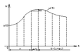 Разбиваем кривую U(t) на равные промежутки времени Δх, тогда можно рассматривать включение цепи на напряжение U(t) как включение цепи в момент времени U(0) и затем, через промежутки времени Δх, включение на ΔU. При этом ΔU берется со знаком “+” при возрастающей кривой, и со знаком “-” – при убывающей. И тогда ток в цепи: