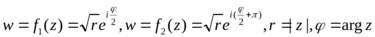 (здесь главное значение аргумента комплексного числа считается выбираемым в диапазоне 0 arg z 2). Эти функции представляют собой однозначные ветви исходной функции в области D. Первая отображает область D на верхнюю полуплоскость, вторая функция отображает область D на нижнюю полуплоскость. Однозначные ветви можно выделять по разному.