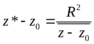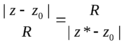 Достаточность. Если любая , проходящая через точки z, z* ортогональна , то беря в качестве прямую получим, что точки лежат на луче, выходящем из центра. Проведем какую-нибудь окружность через точки z, z* . Обозначим любую из точек пересечения окружностей , через . Так как окружности ортогональны, то отрезок z0 , будет и радиусом для и касательной для . По упомянутому свойству касательной, получим равенство |z*-z0||z-z0|=R2.