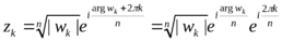 ,|z1|=|z2|,n arg z1 = n arg z2 + 2k, arg z1 = arg z2 = 2k/n. Каждую из областей Dk:2k/n < arg z < 2(k+1)/n функция w=zn отображает на плоскость с вырезом по положительной части действительной оси.