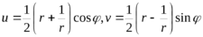 с фокусами 1. Асимптоты гипербол v = u tg . Функция Жуковского переводит внешность единичного круга на плоскость с разрезом по отрезку [-1,1].