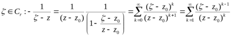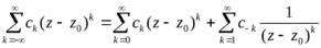 называется главной частью ряда Лорана. Областью сходимости такого ряда ( в случае реального присутствия членов с отрицательными показателями ) будет кольцо r<|z-z0|<R, в частности, может быть r=0, R=.