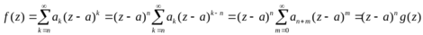 Теорема. Если a нуль аналитической функции ( не тождественно равной нулю ), то существует n такое, что f(z)=(z-a)ng(z), где g(z)-аналитическая функция в точке a, не равная нулю в некоторой окрестности точки a.