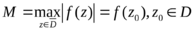 Теорема. Если не тождественно постоянная функция f(z) аналитична в односвязной области D и непрерывна в DD, то её модуль не может достигать максимального значения в области D.