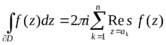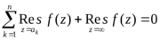 Тероема о сумме вычитов. Если функция f аналитична в С кроме конечного число точек a1,…,an, то