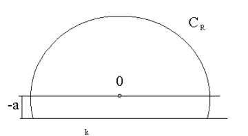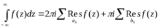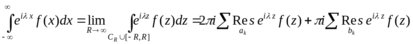 Обобщённая лемма (без доказательства). Если f(z) аналитична в { |z|R0, Im z > -a, a>0 } кроме конечного числа о.т. ak{Im z > 0}, на вещественной оси имеются только полюсы первого порядка bk и
