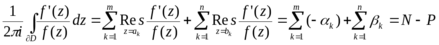 (D- ограниченная, односвязная область, ограниченная кусочно гладкой кривой Жордана D, f(z) – аналитическая в D, кроме конечного числа полюсов ak, k=1,…,n порядков k, f непрерывна в DD, f(z)0 в DD, кроме нулей bk кратностей k. ) Справедливо равенство