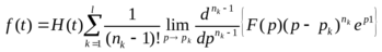 полюсы F(p), nk – из кратности, сумма берется по всем полюсам.