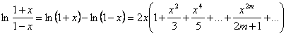 Используем равенство: . Разложим в ряд как прогрессию при . . Тогда, интегрируя это разложение, получим: . Это равенство справедливо при . Кроме того, т.к. ряд сходится по теореме Лейбница, равенство сохранится и при .