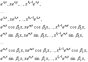 Подведем итоги. В случае, когда все - различные, причем - действительные, а - пара комплексно сопряженных чисел ( ), причем , то фундаментальная система решений уравнения (1) имеет вид: .