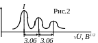 Все это подтвердилось на опыте, особенно при больших значениях m (m = 6, 7, 8). При определенных дискретных напряжениях, определяемых согласно (7), гальванометр фиксировал максимальный ток (рис. 2).