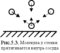 ритяжение молекул между собой приводит к тому, что молекулы, находящиеся у стенки, испытывают притяжение внутрь сосуда и ударяют по стенкам слабее, чем в случае идеального газа (как бы тормозятся пружиной) (см. рис.5.3)