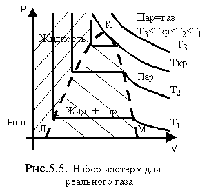 Из рис.5.5 видно, что фазовые переходы пар - жидкость происходят при определенном давлении