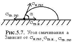 (см. рис.5.7) энергетически выгодно либо смачивать, либо не смачивать поверхность. От этих велечин зависит угол смачивания .