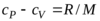 Применяя первое начало термодинамики и уравнение состояния идеального газа, покажите, что разность удельных теплоемкостей