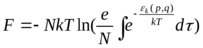 F = -NT ln[ (e / N) kexp(-к/kT)] Эта формула позволяет вычислить свободную энергию газа, состоящего из одинаковых частиц и подчиняющегося статистике. Формула должна быть записана в виде: