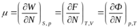 Химический потенциал можно получить дифференциро-ванием любой из величин E, W, F, Ф