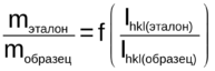 При анализе готовятся серии смесей «определяемая фаза» - эталон. При этом подбор количества эталонного соединения выполняется таким образом, чтобы соотношение интенсивностей выбранной пары было строго пропорционально соотношению масс этих веществ в смеси.