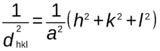 Для кубической сингонии взаимосвязь межплоскостных расстояний с параметром а элементарной ячейки задается формулой: