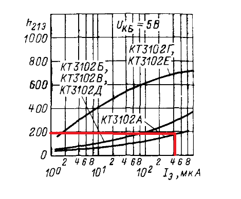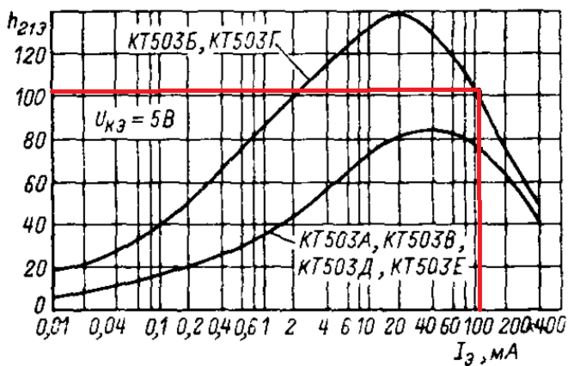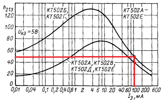 На основании этих условий выбирается пара комплементарных транзисторов KT502Б и КТ503Б, имеющая параметры [1]