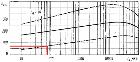 или h21э для каждого из значений принятых токов. Обычно принимаются 6 – 8 значений токов. Исходя из найденных величин h21э i при i-ом значении тока определяются значения токов базы