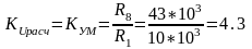 Исходя из найденных номинальных значений сопротивлений резисторов R8 и R1 , рассчитывается коэффициент передачи по напряжению бустера