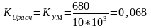 =0,068. На оставшиеся два каскада (входной и промежуточный) усиление должно составлять