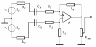 Как уже было отмечено во 2-м разделе, входным каскадом УМ является дифференциальный каскад. Произведем его расчет. Схема дифференциального входного каскада представлена на схеме рис.4.1.