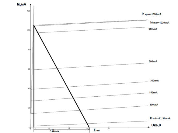 Построенное семейство выходных ВАХ транзистора в оконечном каскаде понадобится для оценки усилительных свойств выходной цепи схемы и для расчета нелинейных искажений.