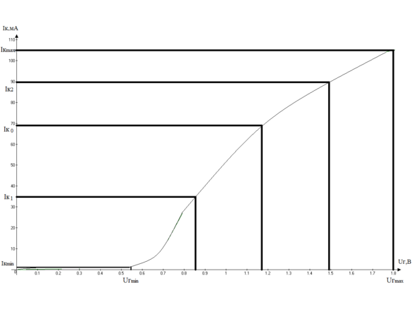 Разбивая обрезок UГмin -UГмах на четыре равные части определяются пять значений токов: