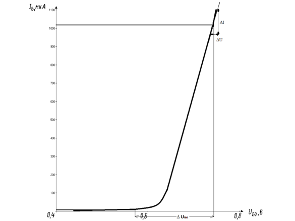 входное сопротивление транзистора, находится из входной характеристики (рис.3.11) при входном токе