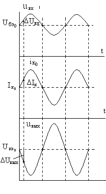 (это хорошо иллюстрирует временная диаграмма работы усилителя (рис.7)). Следует заметить, что усилитель меняет фазу сигнала на 1800 (см. рис. 7), это означает, что УОЭ является инвертирующим.
