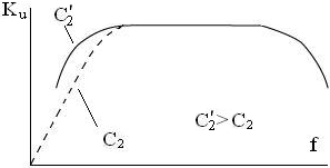 На высоких частотах усилительные свойства каскадов ухудшаются и величина Ku падает.