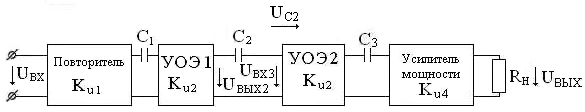 Рис. 14 Блок-схема многокаскадного усилительного устройства.
