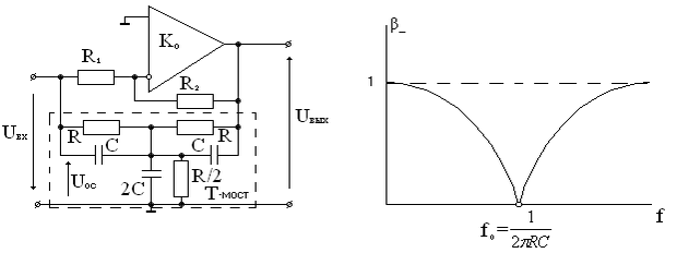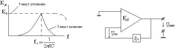 Т-моста. Нужная величина К0 обеспечивается правильным выбором номиналов резисторов R2 и R1 так, что К0= R2 / R1.