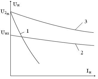 На рис.35 изображена зависимость UН = ƒ(IН) выпрямителя без фильтра (кривая 1).