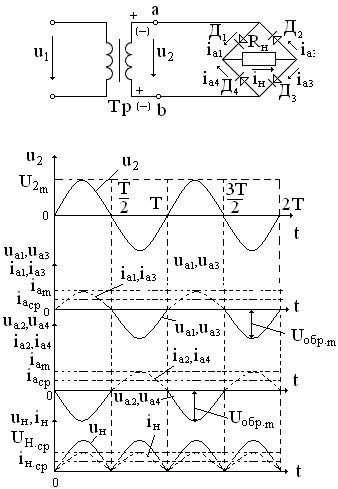 Работа выпрямителя рассматривается с помощью временных диаграмм.