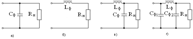 Фильтры состоят из конденсаторов и катушек индуктивности. Основные виды фильтров – емкостной, индуктивный и смешанный (рис.33).