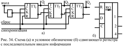 , продвигая информацию через все разряды регистра к выходу, либо в параллельном коде одновременно с выходов